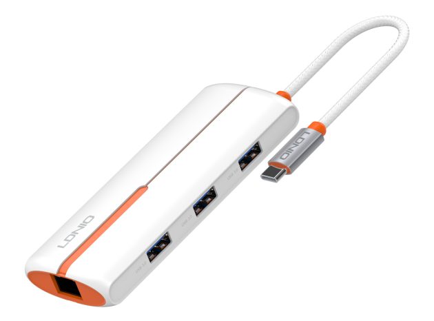 LDNIO USB hub DS-26U με θύρα δικτύου, 6 θυρών, USB-C σύνδεση, 100W PD, λευκό