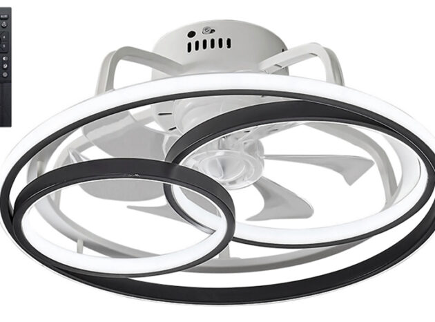 POWERTECH ανεμιστήρας οροφής HLL-0174 με LED φως, 96W, Φ55x35cm, μαύρος