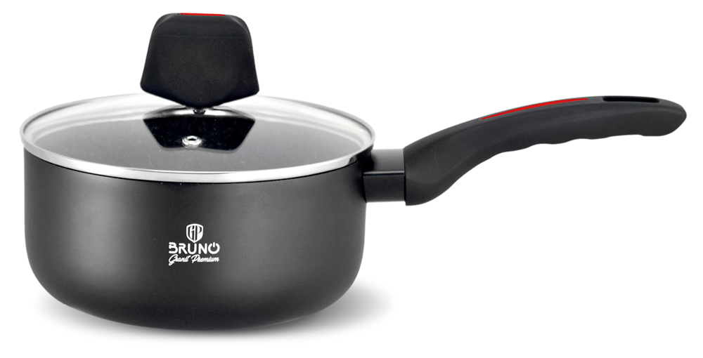 Bruno γαλατιέρα της σειράς Granit Premium με αντικολλητική επίστρωση εξαιρετικής αντοχής. Διαθέτει 3 επίπεδα premium επίστρωσης και εργονομική, αντιολισθητική λαβή. Κατασκευασμένη χωρίς τοξικά υλικά, κατάλληλη για όλες τις εστίες.