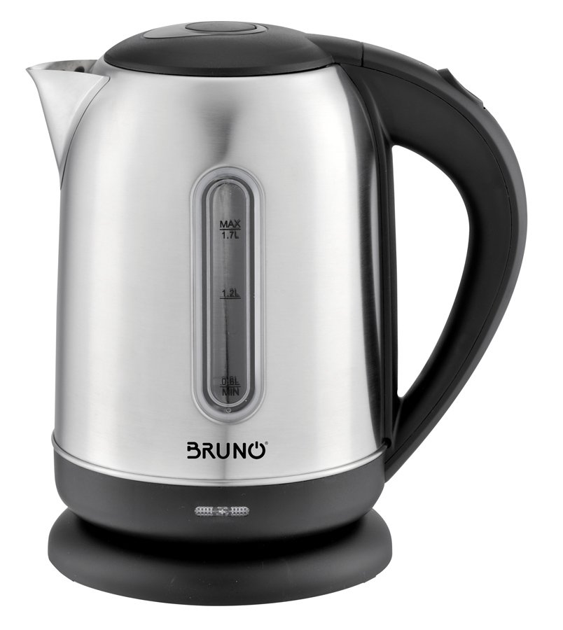 Ηλεκτρικός βραστήρας εξαιρετικής απόδοσης της BRUNO με ισχύ 2200W και χωρητικότητα 1,7 lt. Εξοπλίζεται με περιστρεφόμενη βάση 360° και εργονομική λαβή για εύκολο κράτημα. Επιπλέον διαθέτει σύστημα ασφαλείας κατά του βρασμού χωρίς νερό και σύστημα αυτόματης διακοπής βρασμού.
