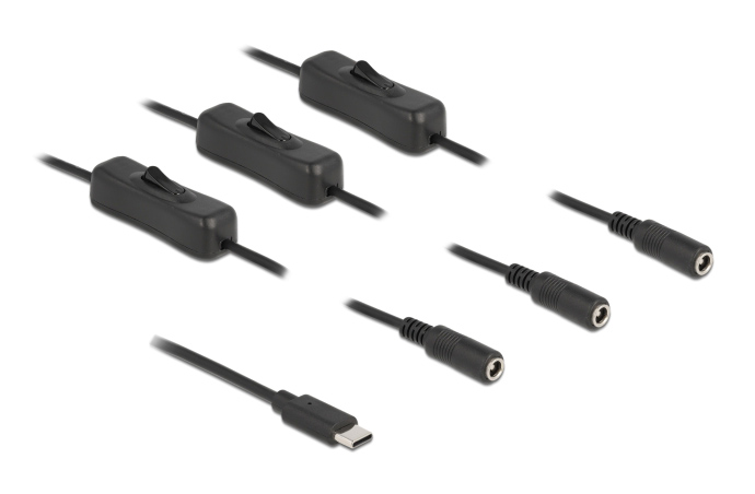 DELOCK καλώδιο USB Type-C σε 3x DC 5.5 x 2.1mm 86801, 1m, μαύρο