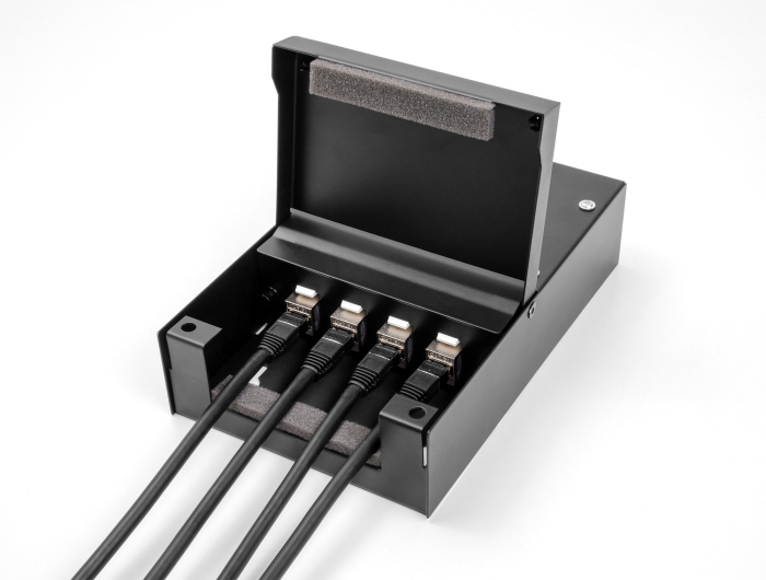 Αυτό το κυτίο της Delock μπορεί να χρησιμοποιηθεί για εγκατάσταση 4 μονάδων Keystone και λειτουργεί ως collection point οργανωμένης καλωδίωσης δικτύου σε κτίρια ή βιομηχανικές περιοχές. Το κυτίο μπορεί να τοποθετηθεί στον τοίχο, το ταβάνι ή το πάτωμα και μπορεί επίσης να χρησιμοποιηθεί επιτραπέζια.