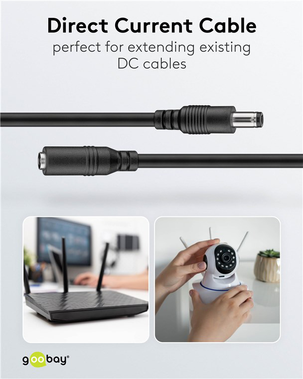 GOOBAY καλώδιο προέκτασης τροφοδοσίας 71399, 5.5×2.1mm, 3m, μαύρο