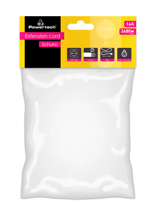 POWERTECH μπαλαντέζα ρεύματος PT-888, 1x schuko, 16A, 3m, λευκή