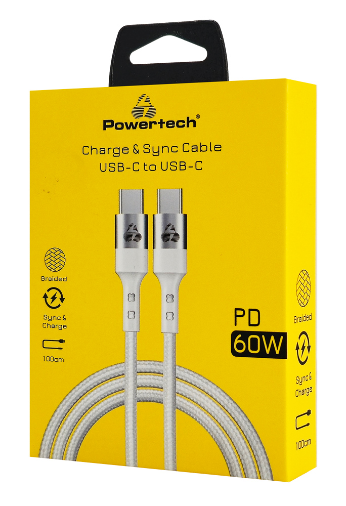 POWERTECH καλώδιο USB-C σε USB-C PTR-0167, PD 60W, copper, 1m, λευκό