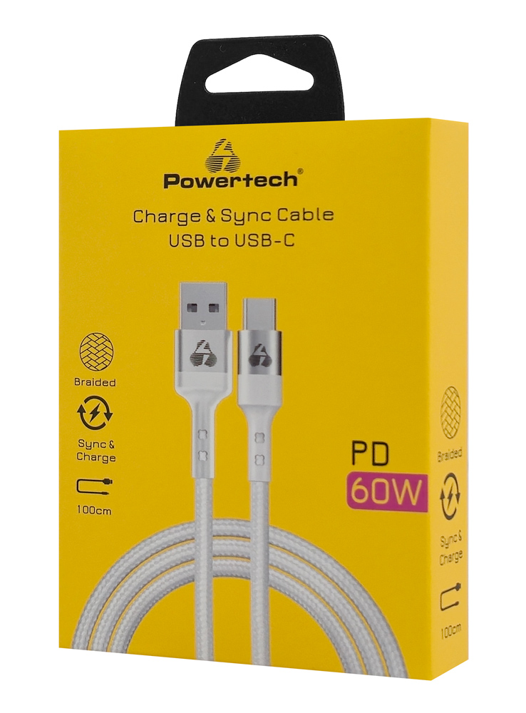 Καλώδιο φόρτισης και μεταφοράς δεδομένων USB-C σε USB της Powertech.