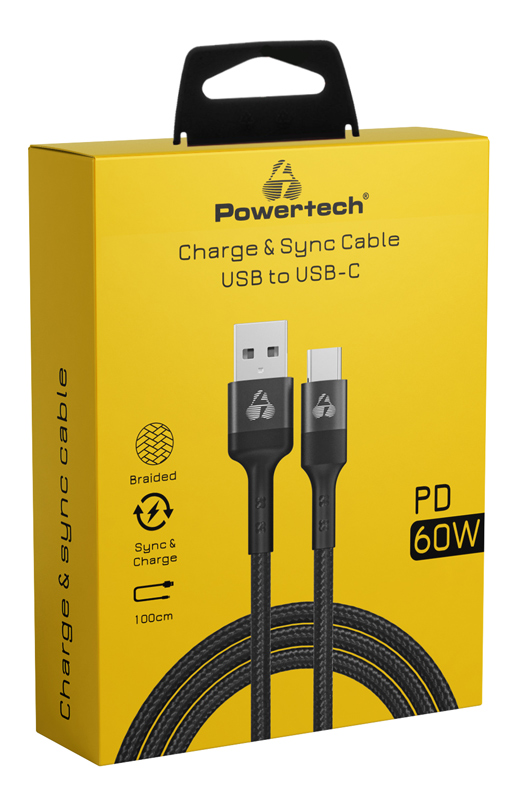 POWERTECH καλώδιο USB σε USB-C PTR-0128, PD 60W, copper, 1m, μαύρο