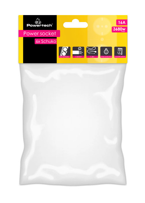 POWERTECH πολύπριζο ασφαλείας PT-1058, 6x schuko, 16A, 1.4m, λευκό