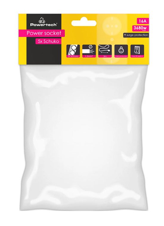 POWERTECH πολύπριζο ασφαλείας PT-882, 5x schuko, 16A, 3m, λευκό