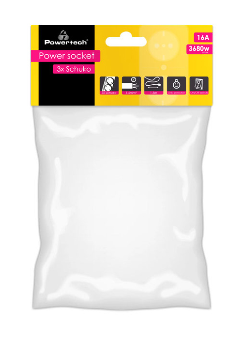 POWERTECH πολύπριζο PT-873, 3x schuko, 16A, 1.5m, λευκό