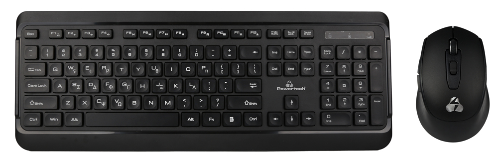 Set περιφερειακών για PC από την Powertech που αποτελείται από ασύρματο πληκτρολόγιο και ασύρματο οπτικό ποντίκι.