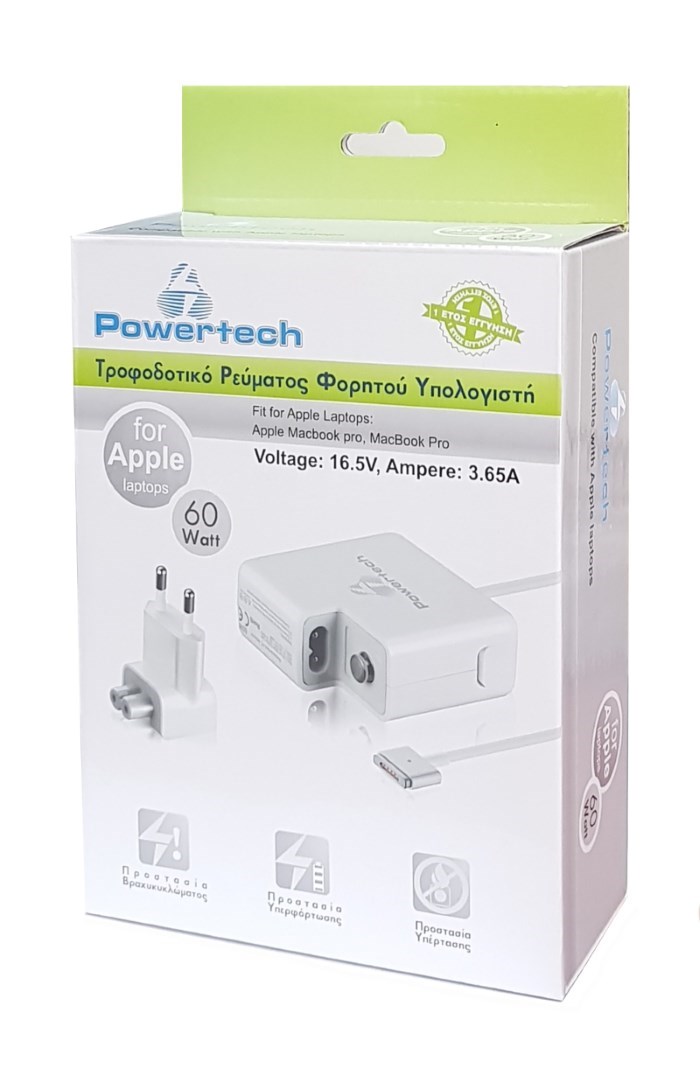 POWERTECH τροφοδοτικό laptop PT-289 για Apple, 60W, 16.5V/3.65A, λευκό