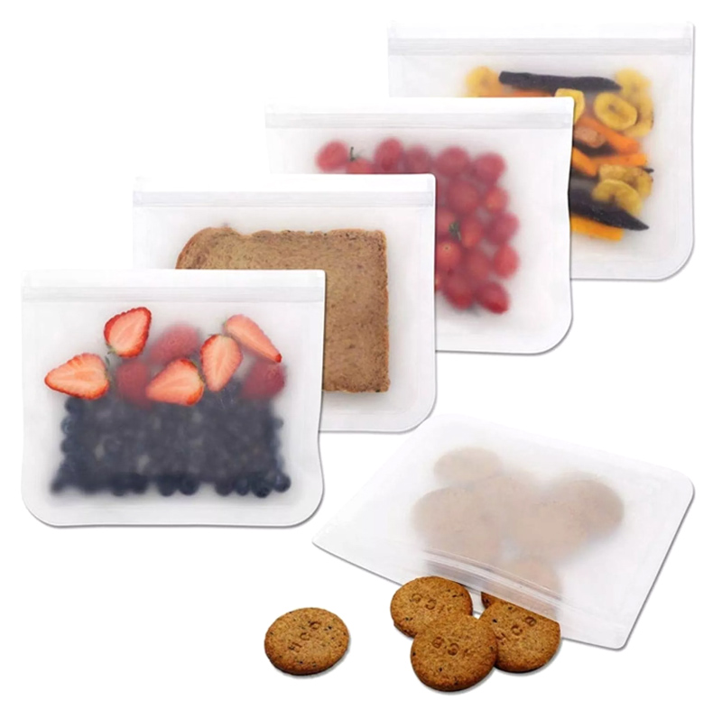 Σετ επαναχρησιμοποιούμενες αεροστεγείς σακούλες τροφίμων, κατασκευασμένες από υλικό EVA κατάλληλο για τρόφιμα, χωρίς PVC, χωρίς μόλυβδο, χωρίς χλώριο και χωρίς BPA. Είναι ιδανικές για τρόφιμα, σνακ, σάντουιτς, υγρά τρόφιμα αλλά ακόμη και για αξεσουάρ ή καλλυντικά ταξιδίου. Το σετ περιλαμβάνει 2 σακούλες μεγέθους 21.5 x 18cm και 2 σακούλες μεγέθους 26 x 20cm.
