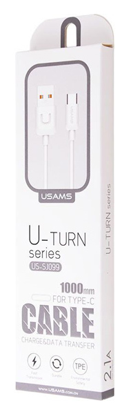 USAMS καλώδιο USB-C σε USB US-SJ099, 2.1A, 1m, λευκό